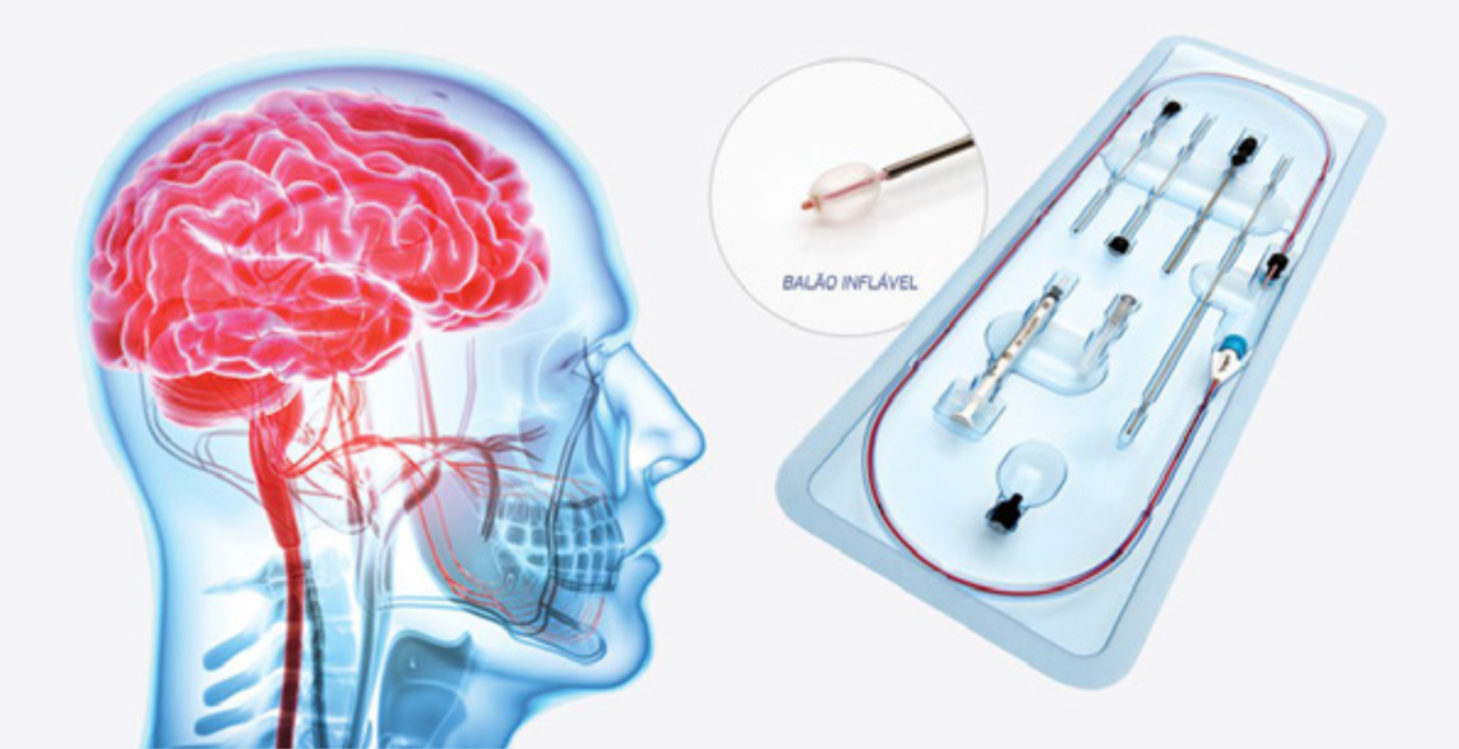 O kit foi desenvolvido para auxiliar o cirurgião na compressão do nervo trigêmeo. O procedimento consiste em acessar o nervo trigêmeo com a(s) cânula(s) e mandril(is) e, por meio do balão inflável, comprimir temporariamente o nervo. A escolha de qual(is) cânula(s) e mandril(is) utilizar é de responsabilidade do médico. Se necessário, pode realizar também a punção do nervo durante o procedimento.